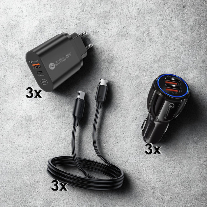 MEGA Family Power Pack - 3X3 komplet za brzo punjenje doma, u autu i na putu - za cijelu obitelj