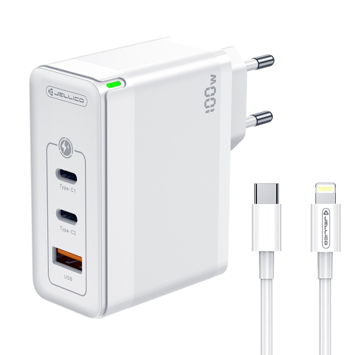 Zidni punjač Triple-GaN 100W - s dva USB-C PD i USB-A QC 3.0 izlazi i s GaN tehnologijom - Više kombinacija!